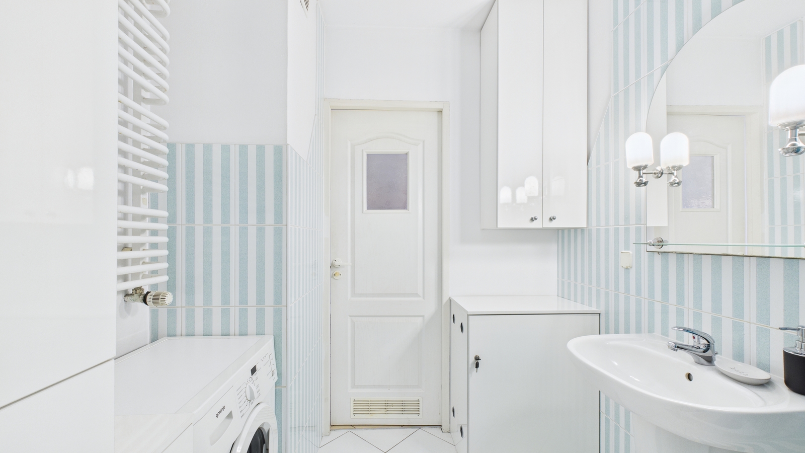 - łazienka (z wanną, lustrem, umywalką z praktyczną szafką, toaletą, pralką)