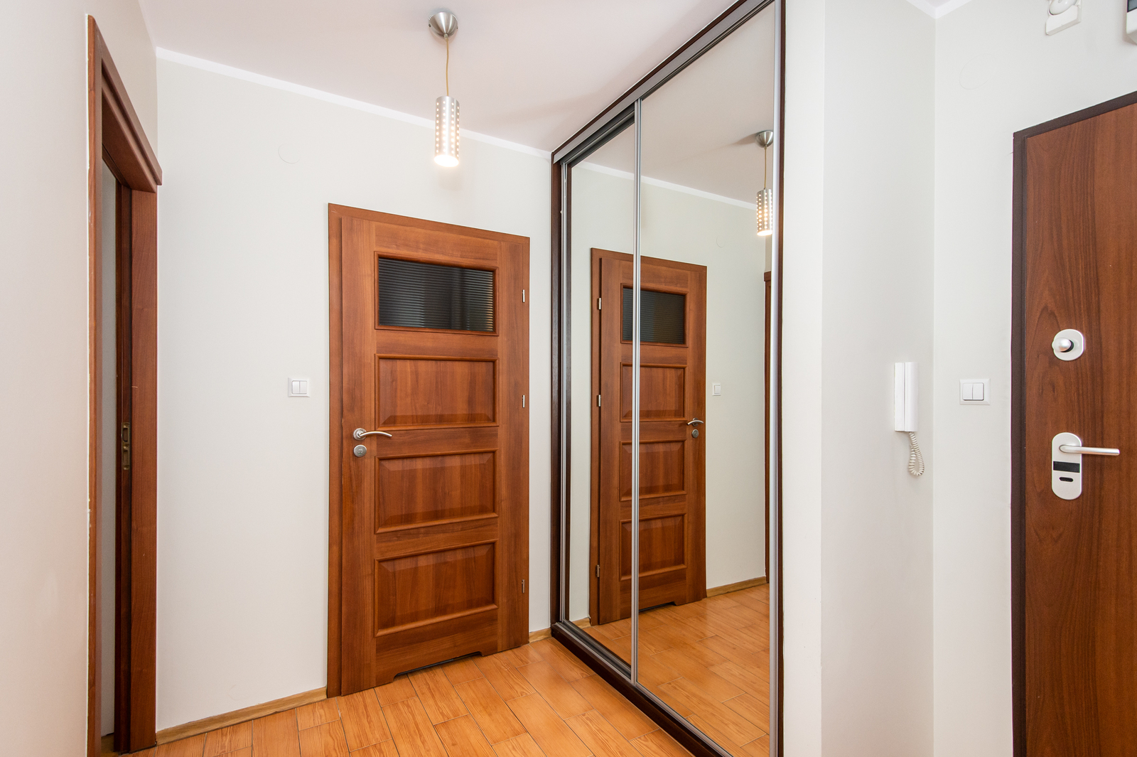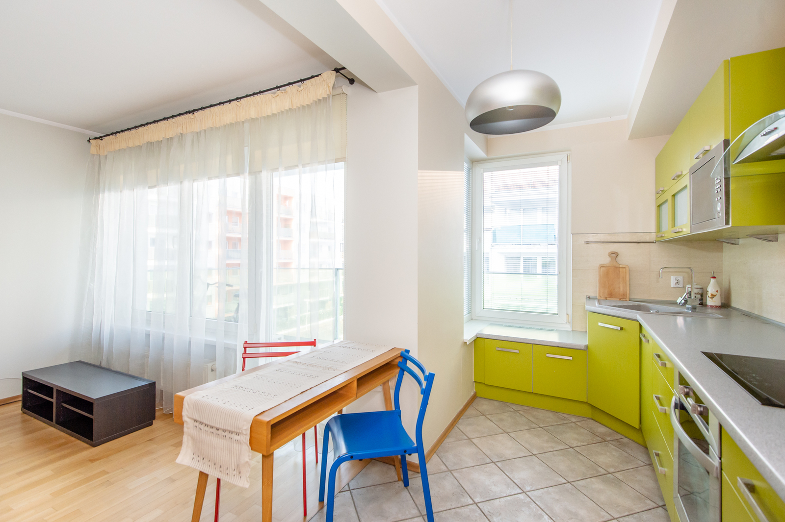 WOLNE OD LUTEGO. Całość umeblowana i wyposażona w ruchomości oraz zabudowę widoczną na zdjęciach. Salon z rozkładanym narożnikiem, fotelem, komodą RTV, oddzielony od części kuchennej stołem z dwoma krzesłami. Z pokoju dziennego wyjście na balkon. Aneks w zabudowie kuchennej z piekarnikiem, płytą elektryczną, lodówką z zamrażarką, zlewozmywakiem. W łazience kabina prysznicowa, pralka, umywalka, toaleta. W korytarzu znajduję się duża, zabudowana szafa na odzież wierzchnią.