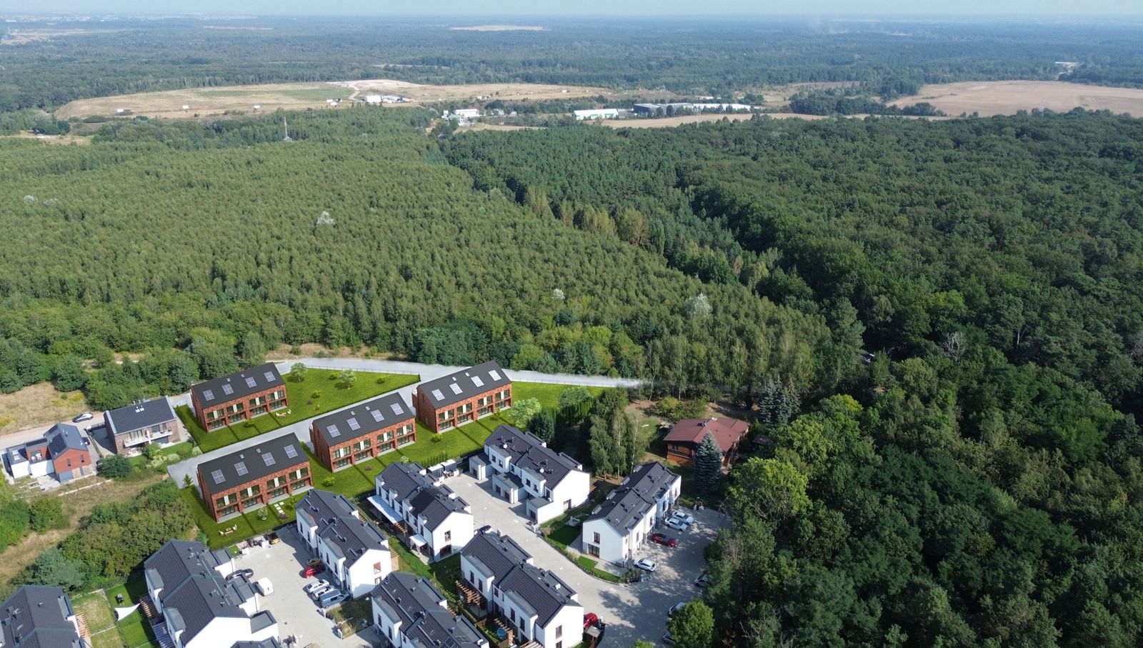 Ta inwestycja powstała w Suchym Lesie, w bezpośrednim sąsiedztwie rezerwatu Morasko – zielonej enklawy, gdzie architektura nie zakłóca przyrody, lecz wpisuje się w jej rytm. To miejsce, w którym technologia realnie pracuje na Twój komfort – dyskretnie, efektywnie, codziennie.