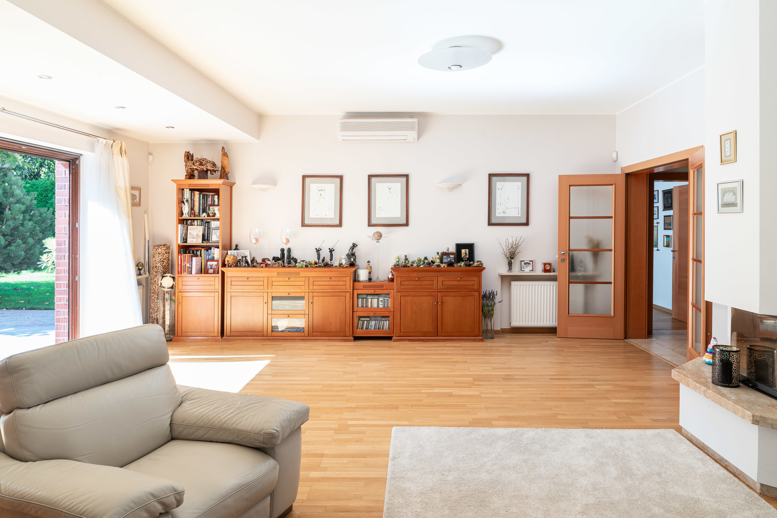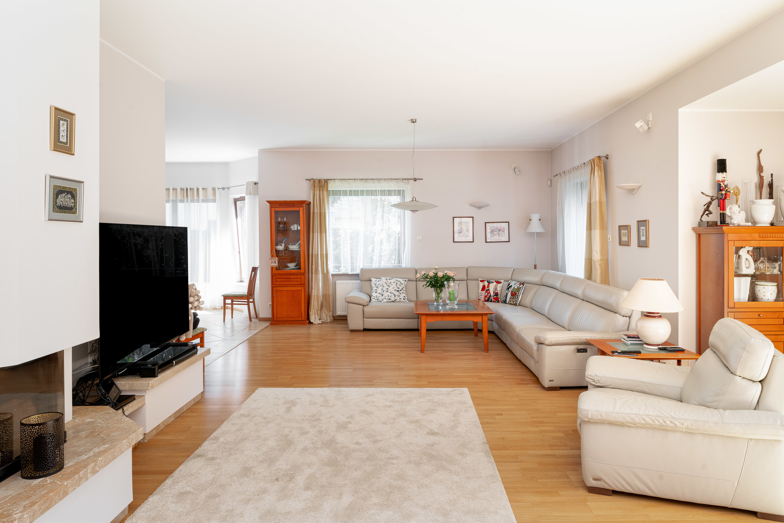 Dom wyposażony m.in w odkurzacz centralny, kominek, na podłodze desa warstwowa