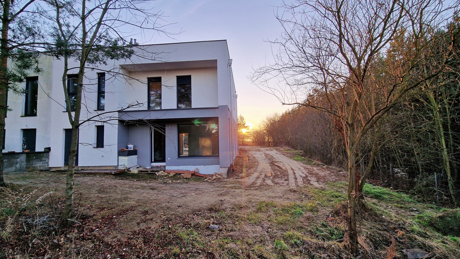 Polecam do zakupu nowoczesny dom z płaskim dachem w zabudowie bliźniaczej.