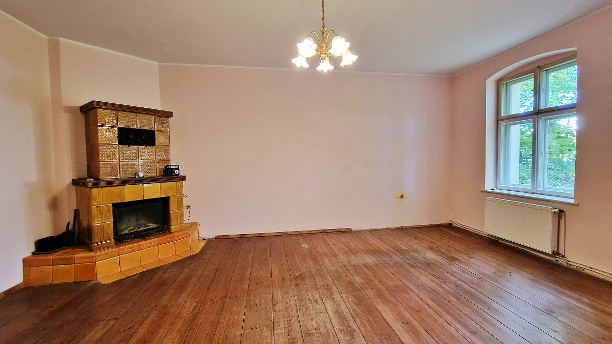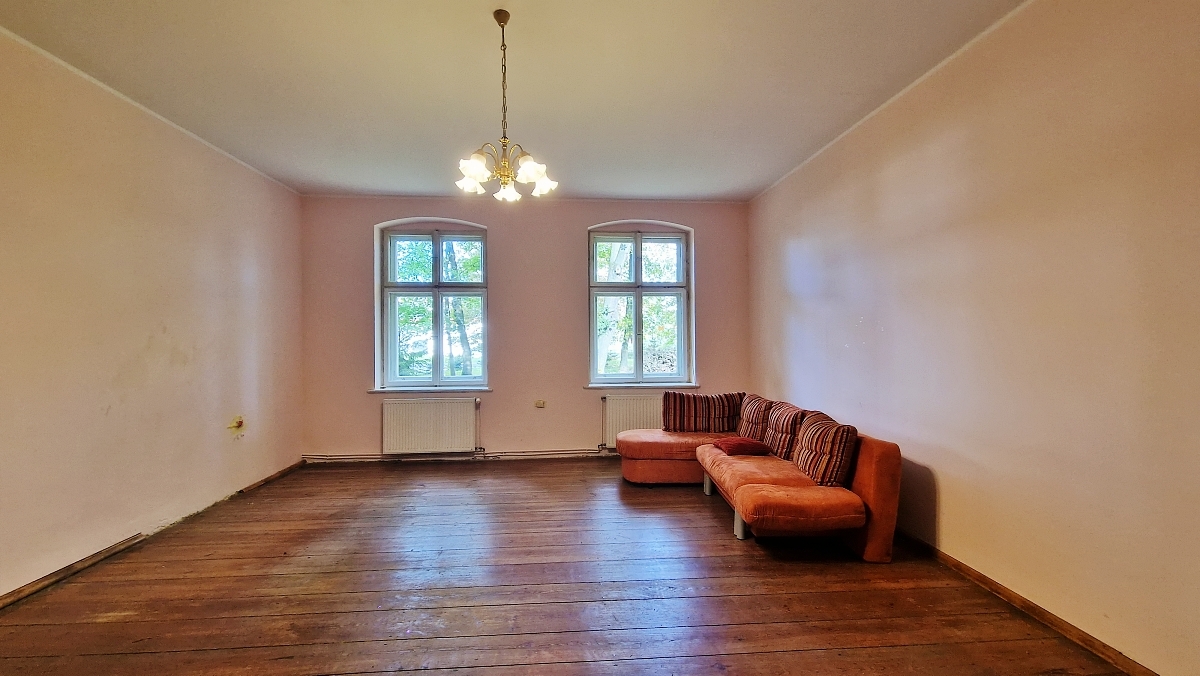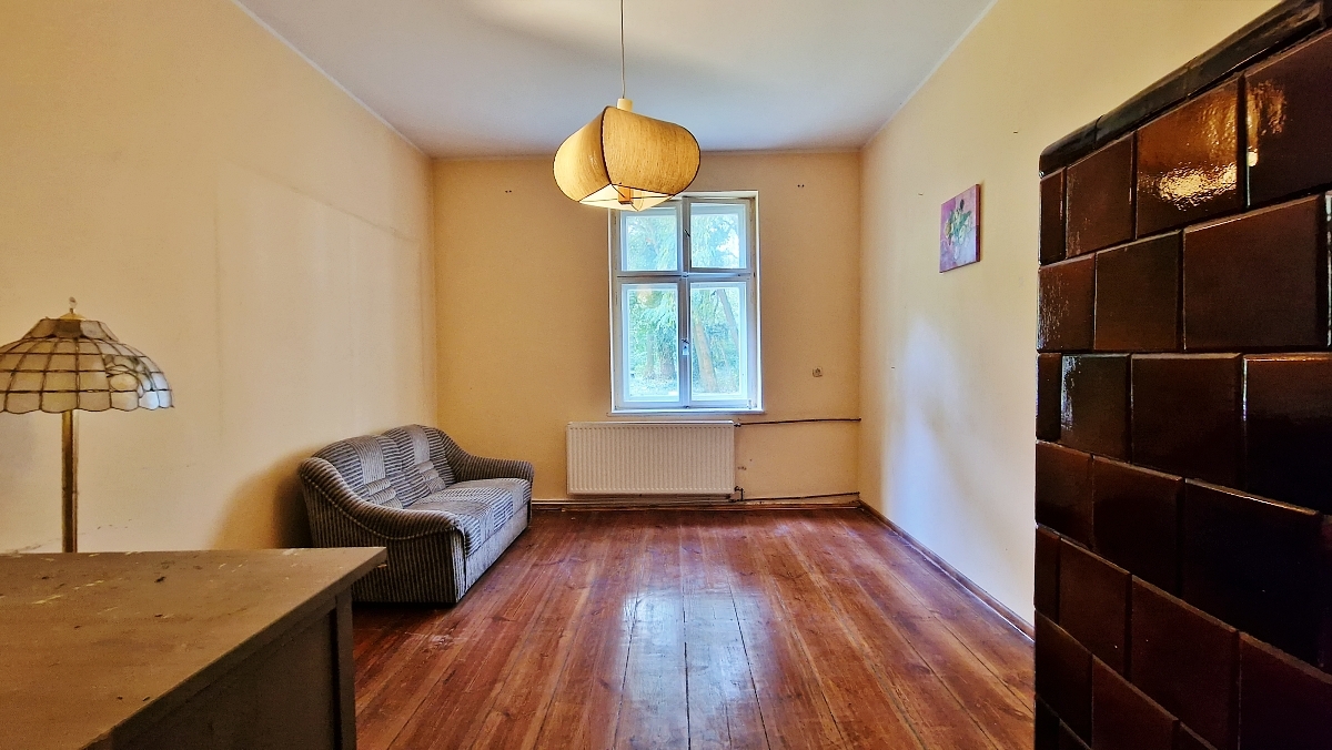Dwór zbudowany w roku 1888. Mieszkanie jest położone na parterze. Mozliwość korzystania z pięknego ogrodu ze starodrzewiem. Grunt jest ogrodzony murem i siatką. Media - prąd, woda, gaz oraz kanalizacja - płatne według zużycia, brak opłat administracyjnych.