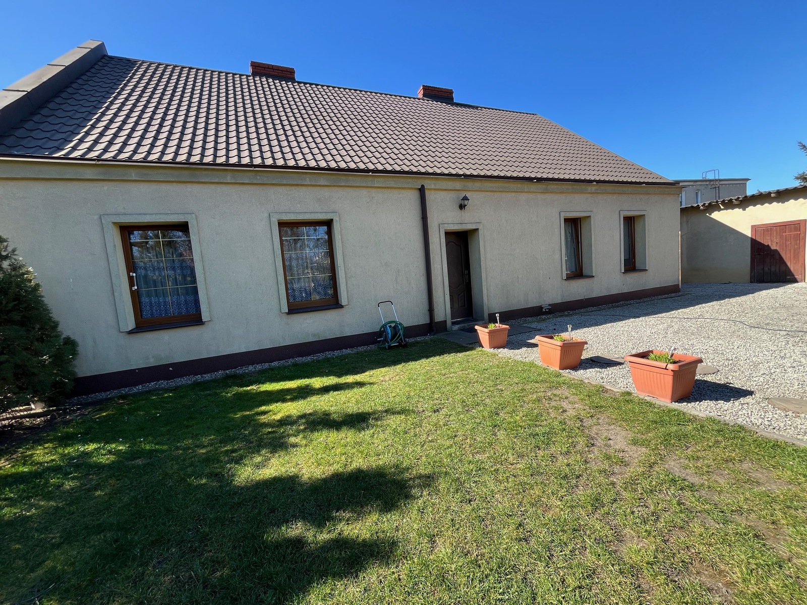 Nieruchomość składa się z przestronnego domu o pow.120m2 wolnostojącego garażu, oraz dwóch pomieszczeń gospodarczych usytuowanych na dużej działce o pow.1133m2.