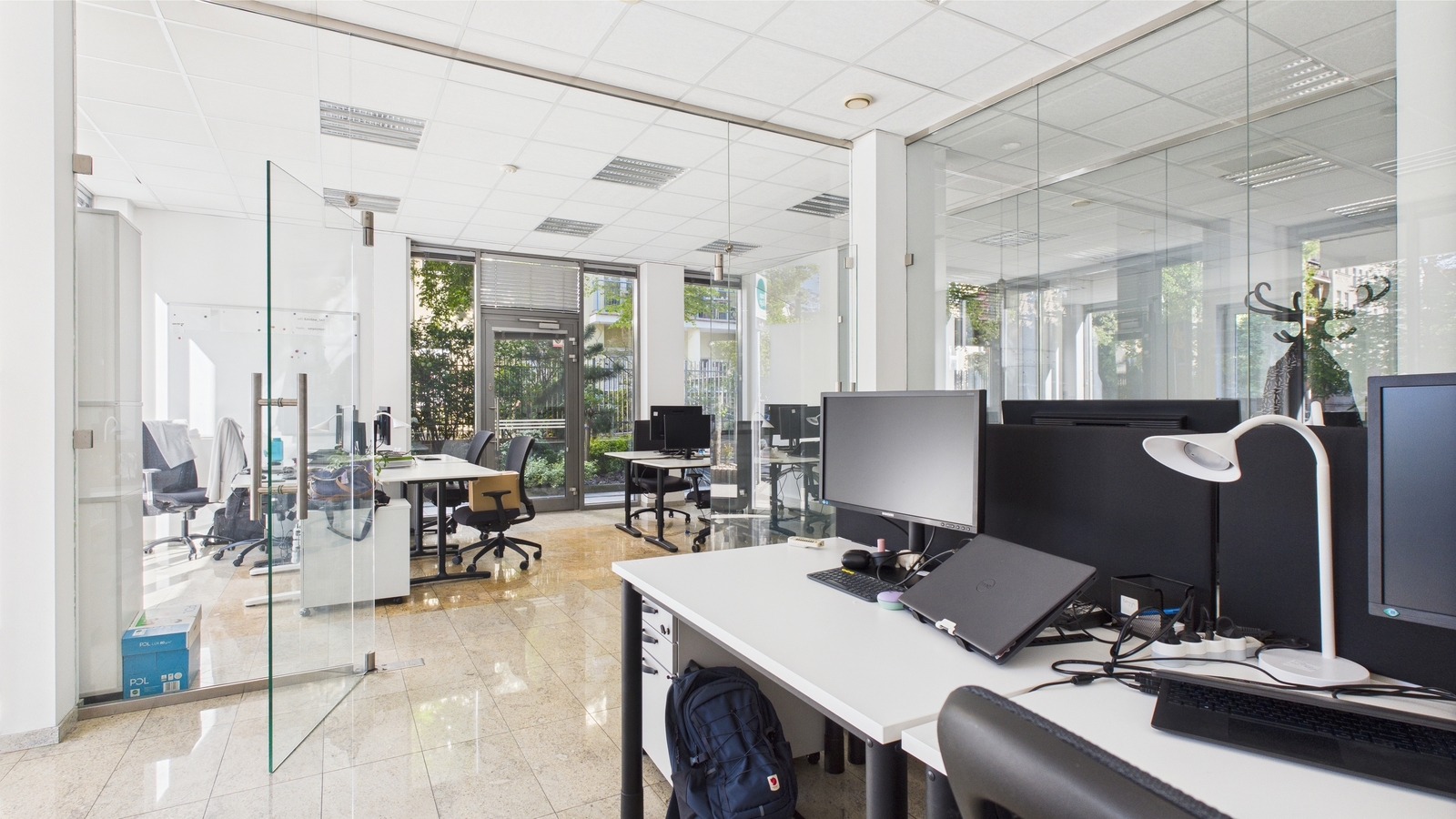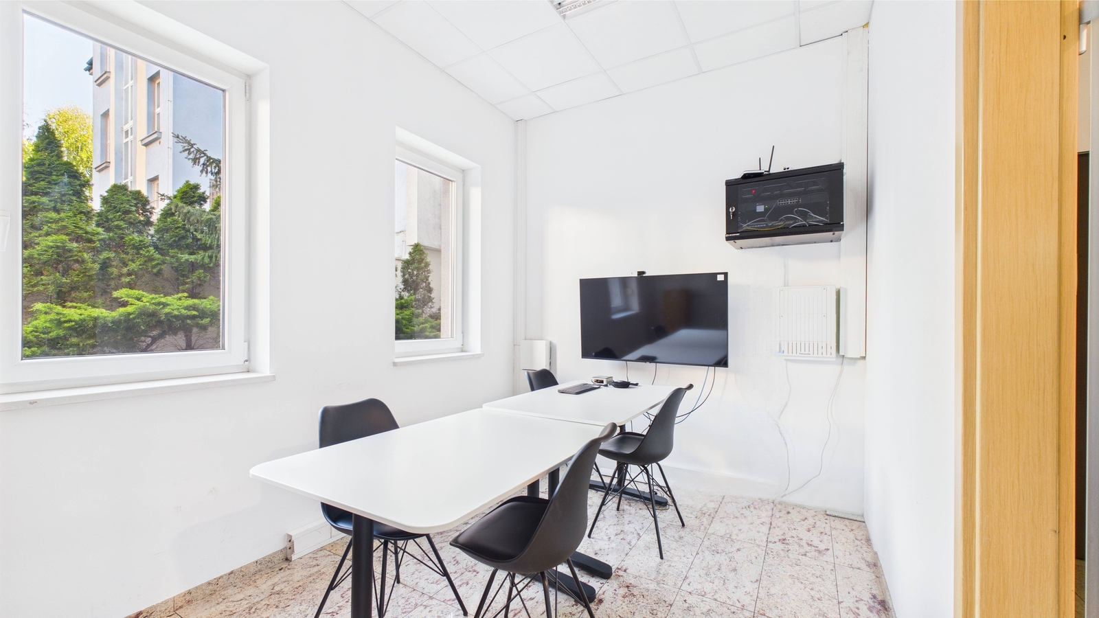 - Wyposażenie: Klimatyzacja, podwieszane sufity z oświetleniem, rozprowadzona sieć komputerowa i telekomunikacyjna; szybki Internet w cenie najmu.