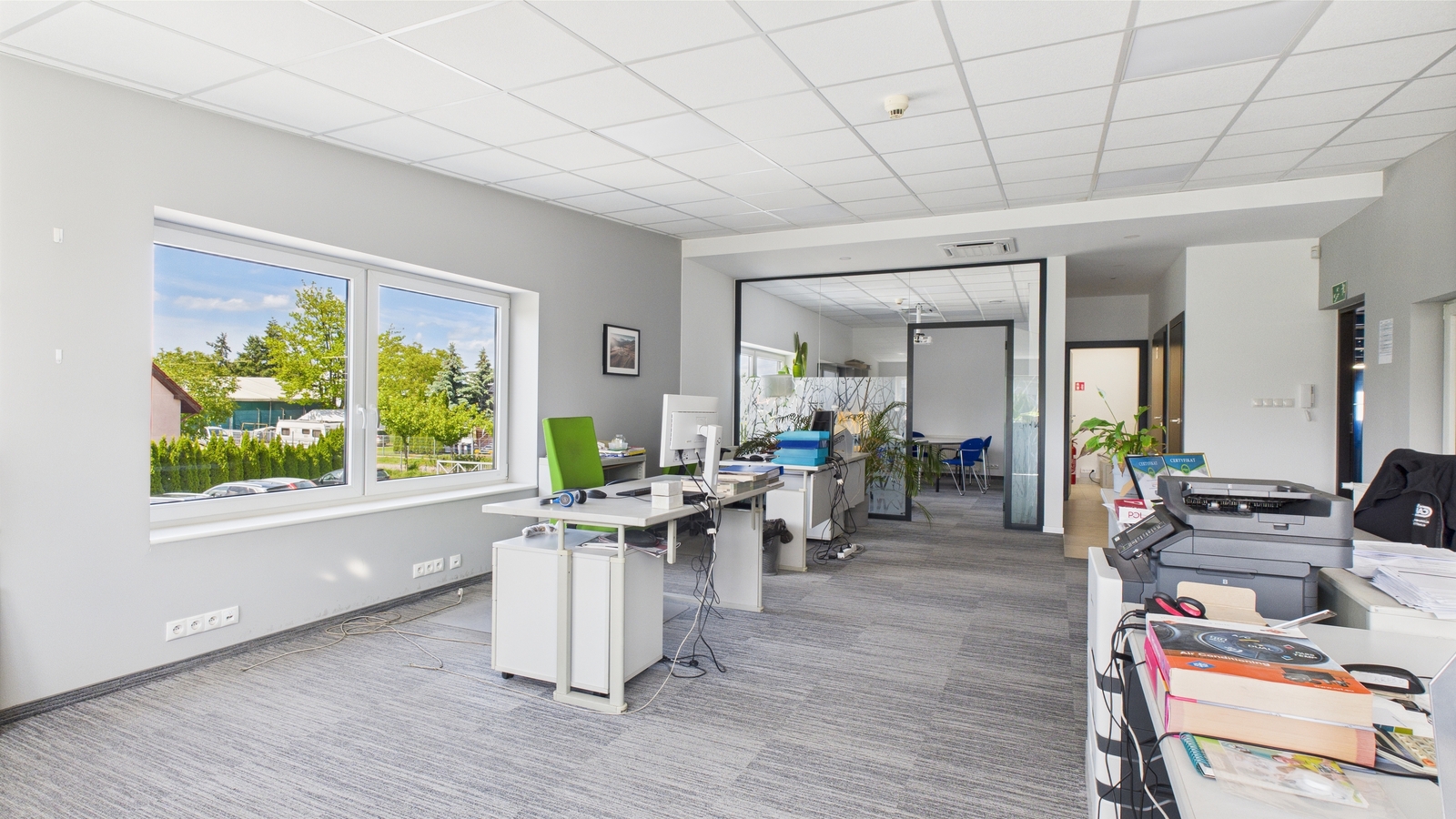 - Część biurowa składa się z kilku klimatyzowanych gabinetów, sali konferencyjnej oraz aneksu kuchennego