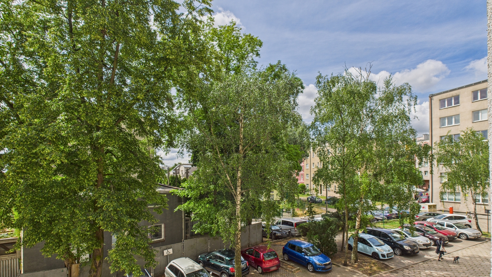 - Duży balkon z widokiem na zieleń – idealne miejsce na poranną kawę
