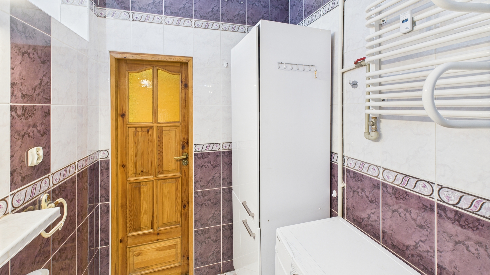 - Łazienka z prysznicem, WC, pralką i pojemnymi szafkami