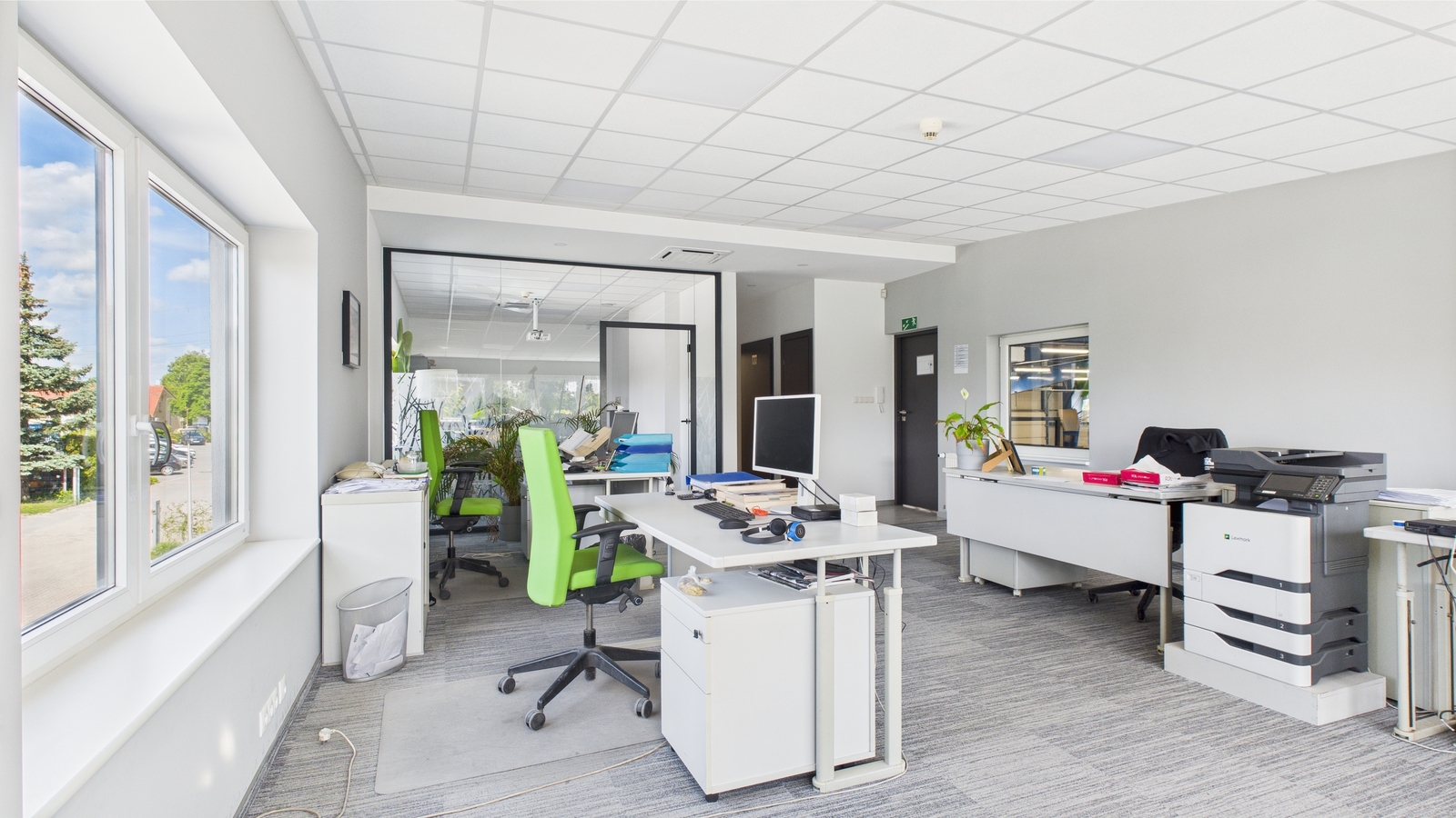 - Część biurowa składa się z kilku klimatyzowanych gabinetów, sali konferencyjnej oraz aneksu kuchennego