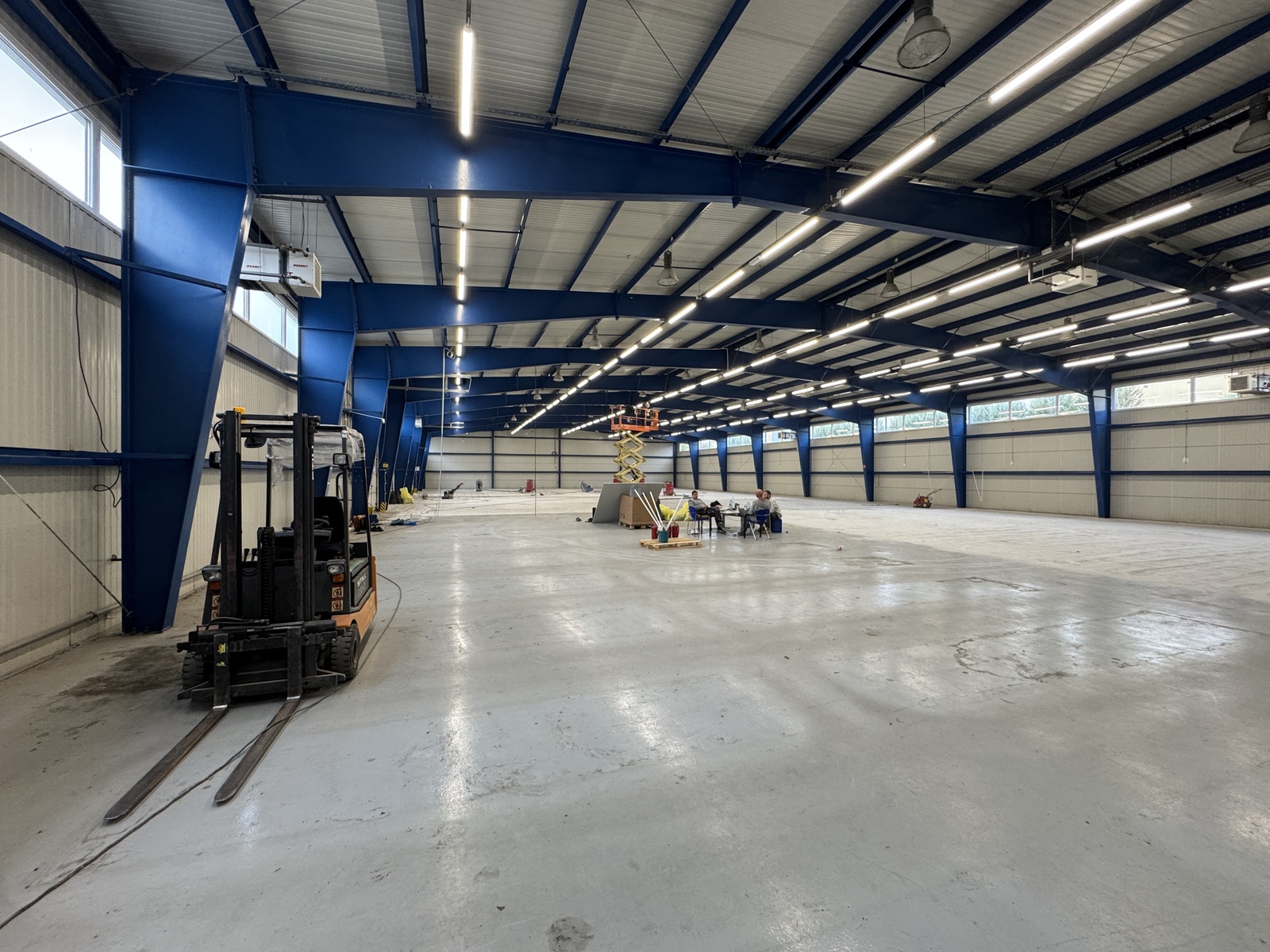 - Hala z nowoczesnym oświetleniem LED i dobrym doświetleniem dziennym (pasma okienne na wysokości)