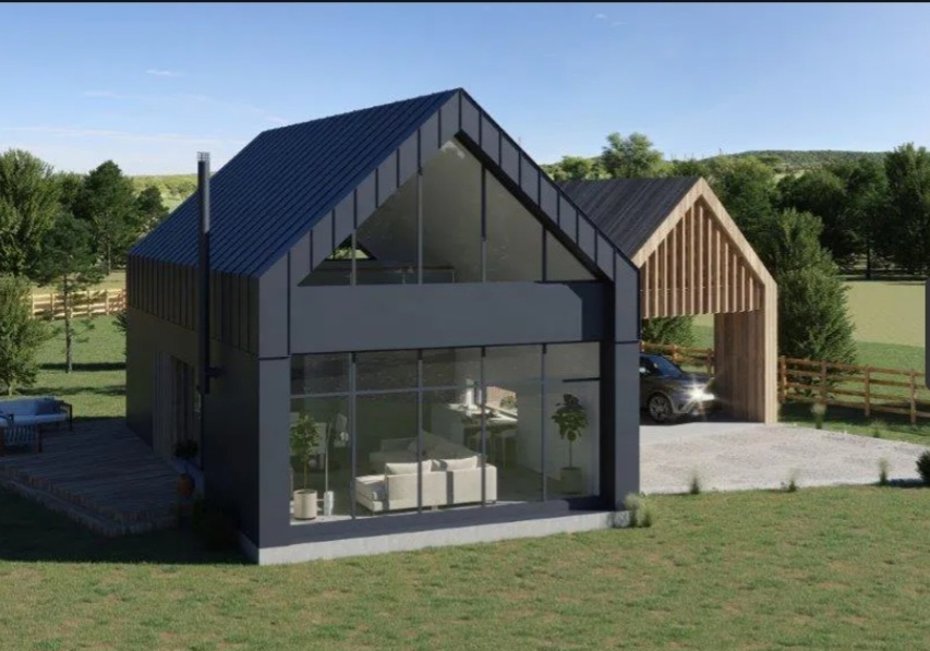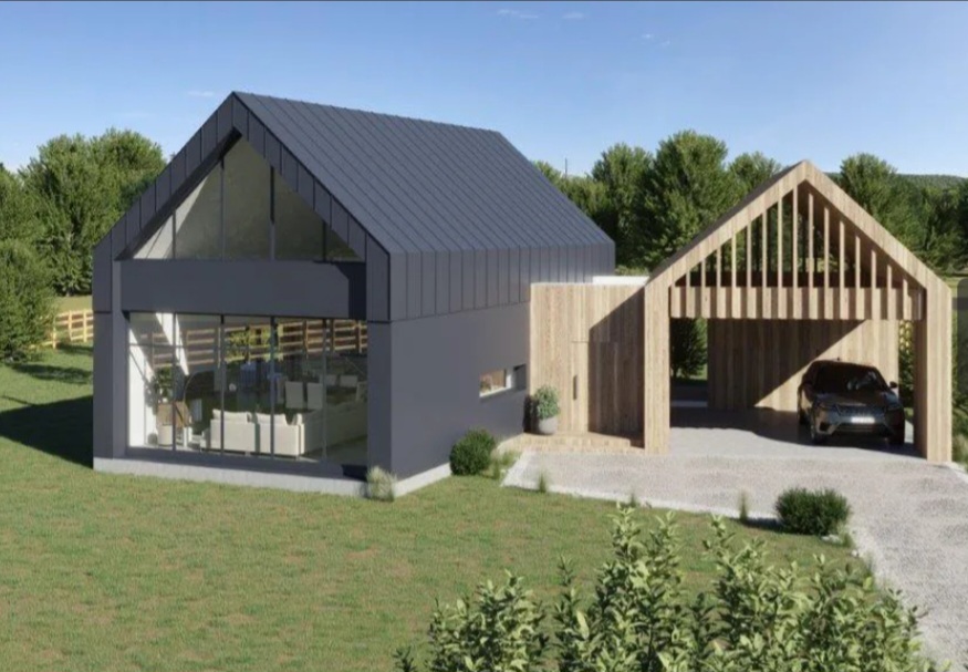Dom wolnostojący typu "stodoła" , budowany wg projektu MJS-124.