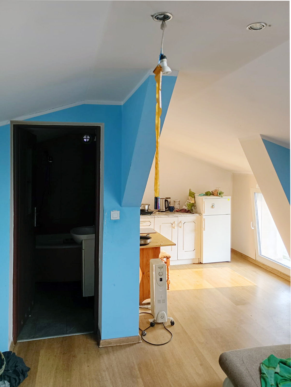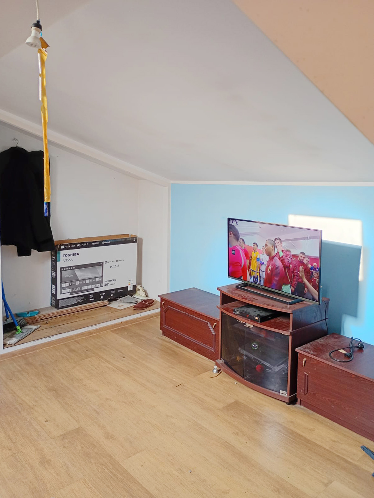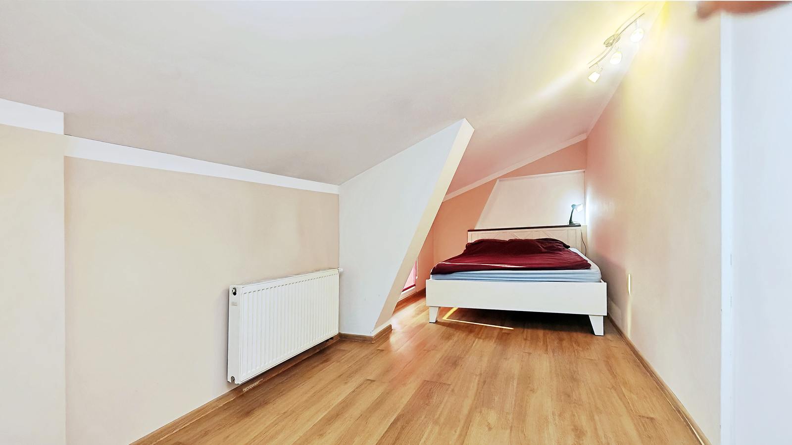 Pierwsze z nich jest dwupoziomowe, na dole, salon , kuchnia korytarz, u góry 2 sypialnie i łazienka. Dwa pozostałe to kawalerki. Piętro domu ma obniżony sufit, nie liczy się zatem do podatku. Dwa mieszkania przeszły generalny remont, jednak kawalerka jeszcze nie. W bryle domu jest tez kotłownia z piecem na ekogroszek. Kanalizacja miejska jest w trakcie budowy, aktualnie działa szambo 10m3.