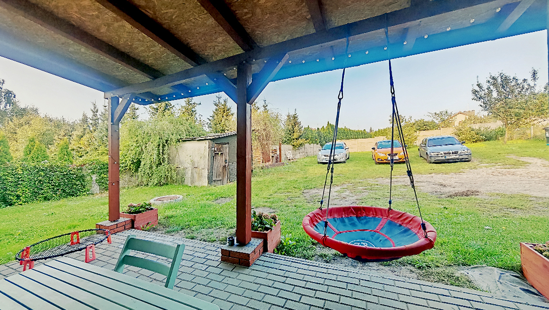 Budynek wolnostojący wyremontwany gruntownie w 2015 roku w technologii cegły tradycyjnej na działce o powierzchni 650 m2. Działka niemal w kwadracie, porośnięta trawką. Ogrodzenie wykonane z siatki, brama metalowa. Z budynku wyjście na zadaszony taras (pow. 15 m2) z widokiem na zieleń ogrodu.