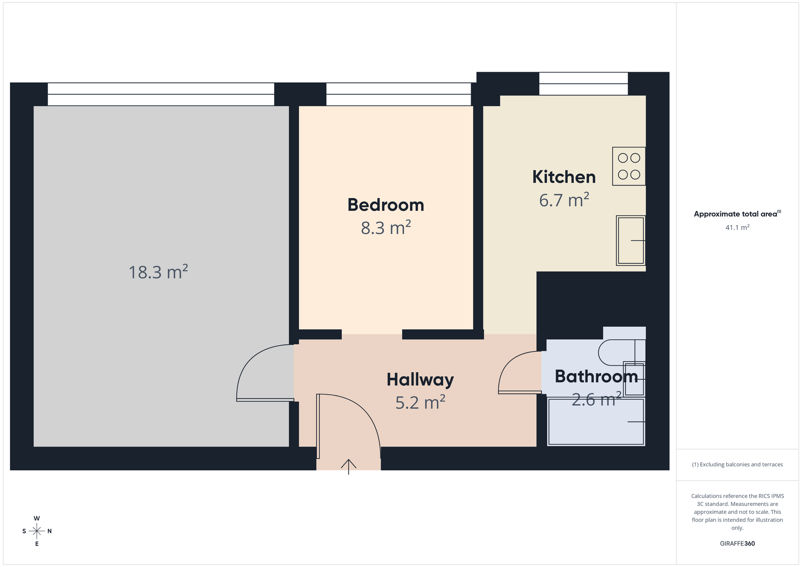 - łazienka – 2,6 m²,
