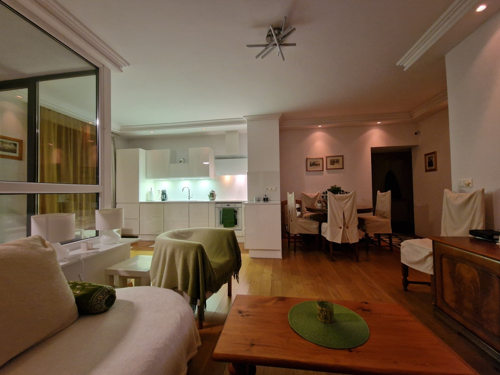 Z racji na duża ilość okien mieszkanie jest bardzo jasne i cieple.