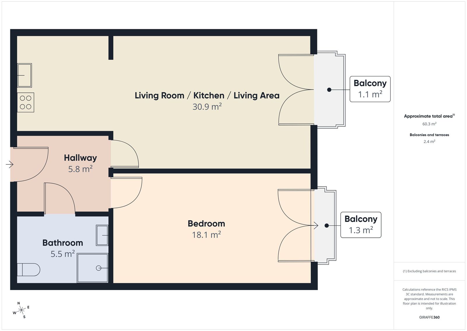 Mieszkanie jest skierowane na stronę wschodnią, dzięki czemu poranki są tu jasne i pełne naturalnego światła.