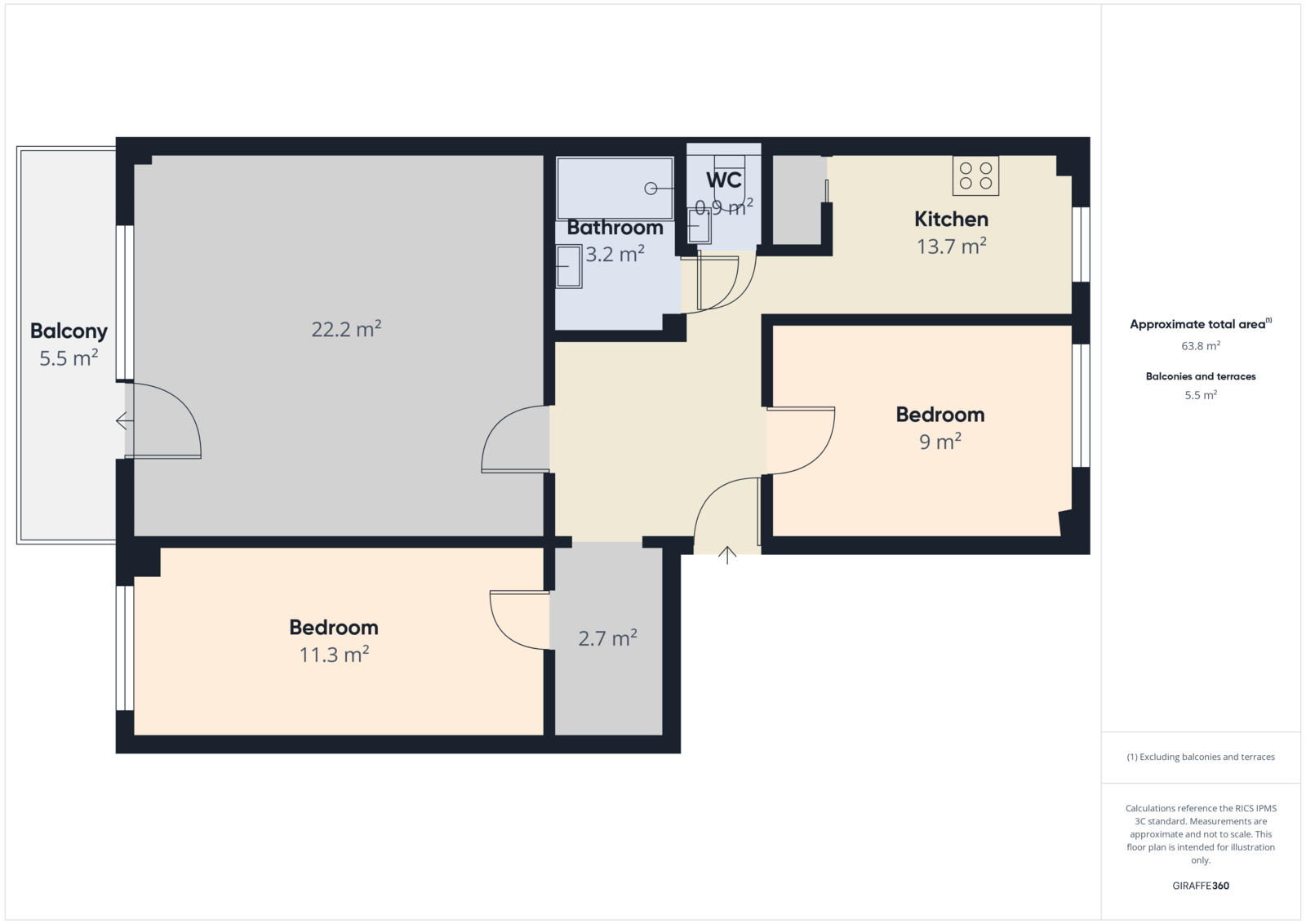 3 pokój - dwuosobowy + balkon [22,2 m2]