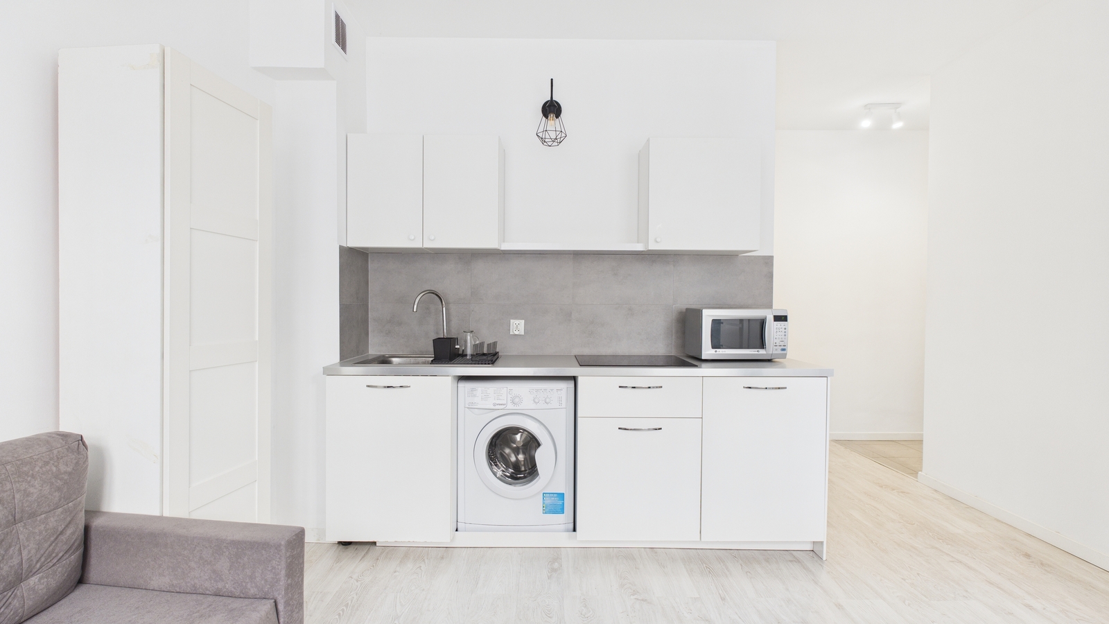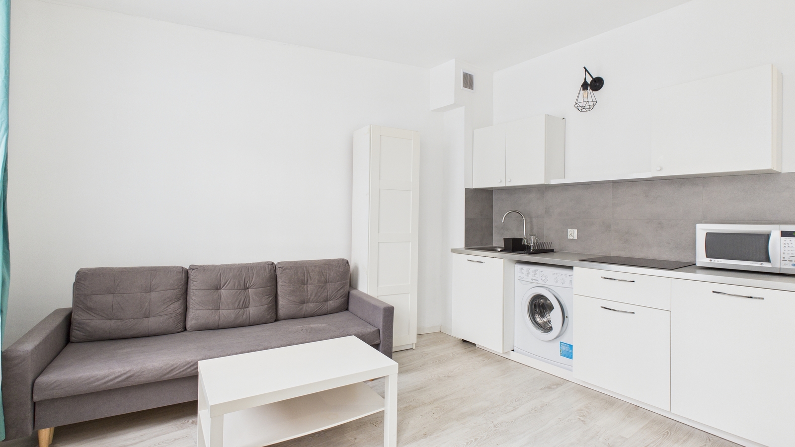 Mieszkanie się składa z salonu z aneksem kuchennym, przedpokoju oraz łazienki.