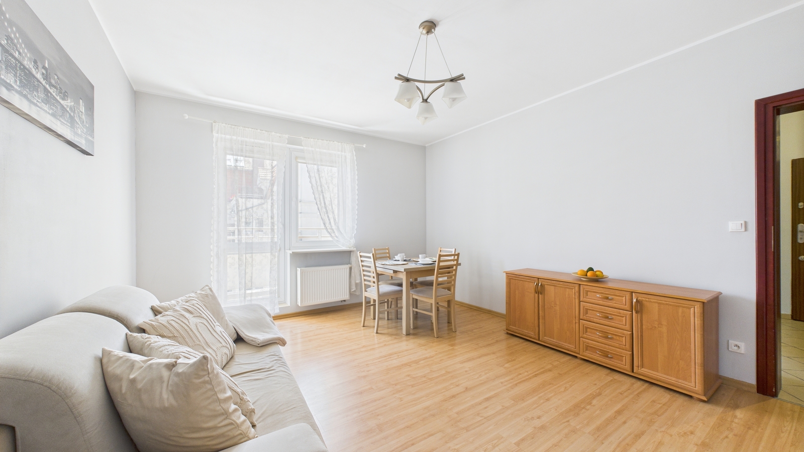 Koszt: 2600 zł cena najmu + koszty eksploatacyjne ok. 700 zł (w tym woda i ogrzewanie) + prąd według liczników.