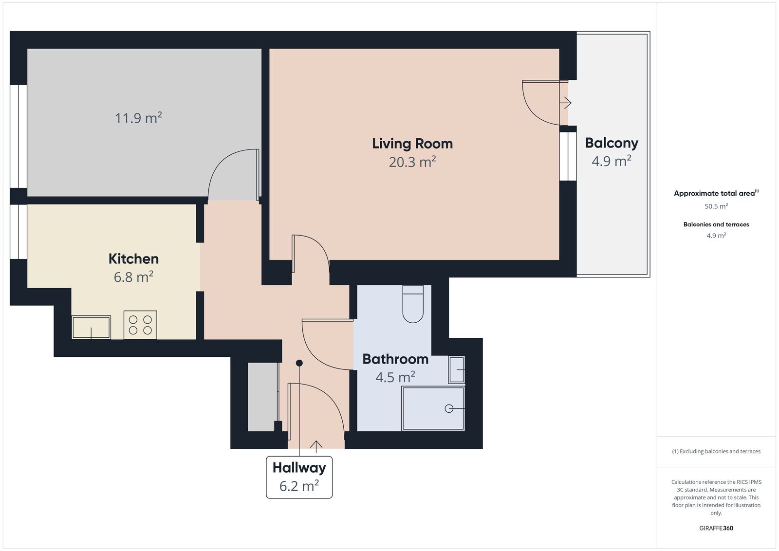 Składa się z 2 niezależnych pokoi (powierzchnia ok. 20 i 12 mkw,), jasnej oddzielnej kuchni (6,8 mkw.), łazienki (4,5 mkw.) i przedpokoju.