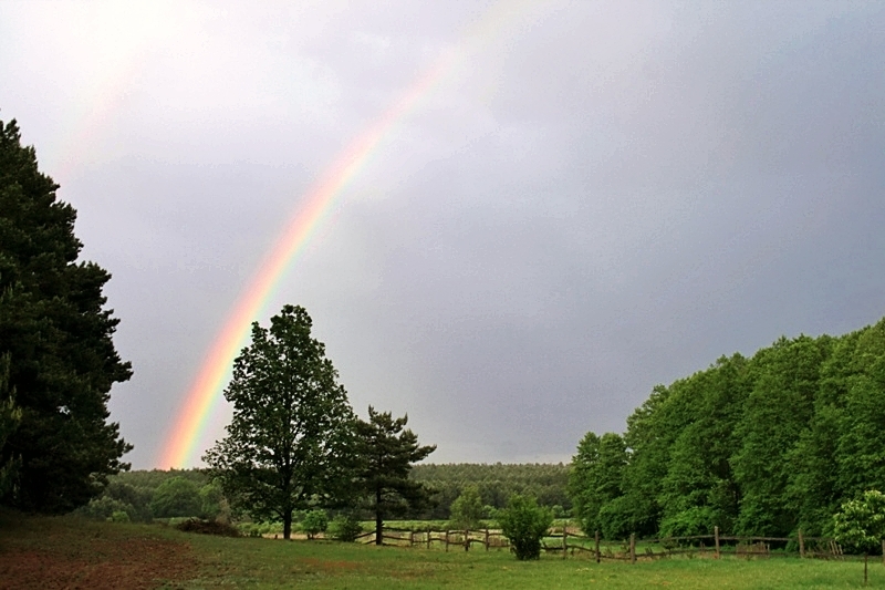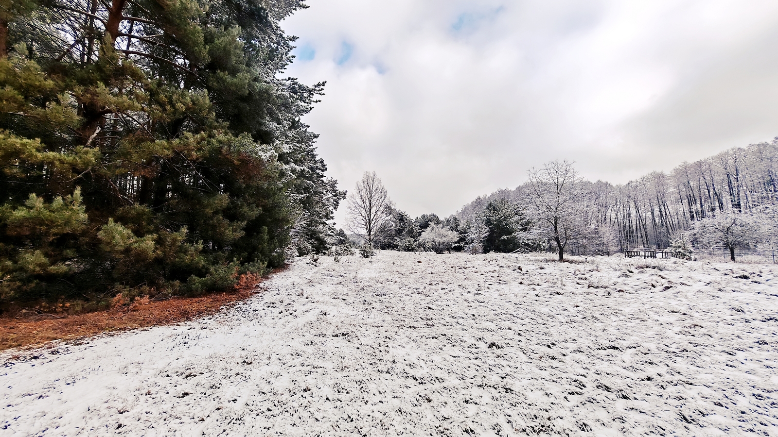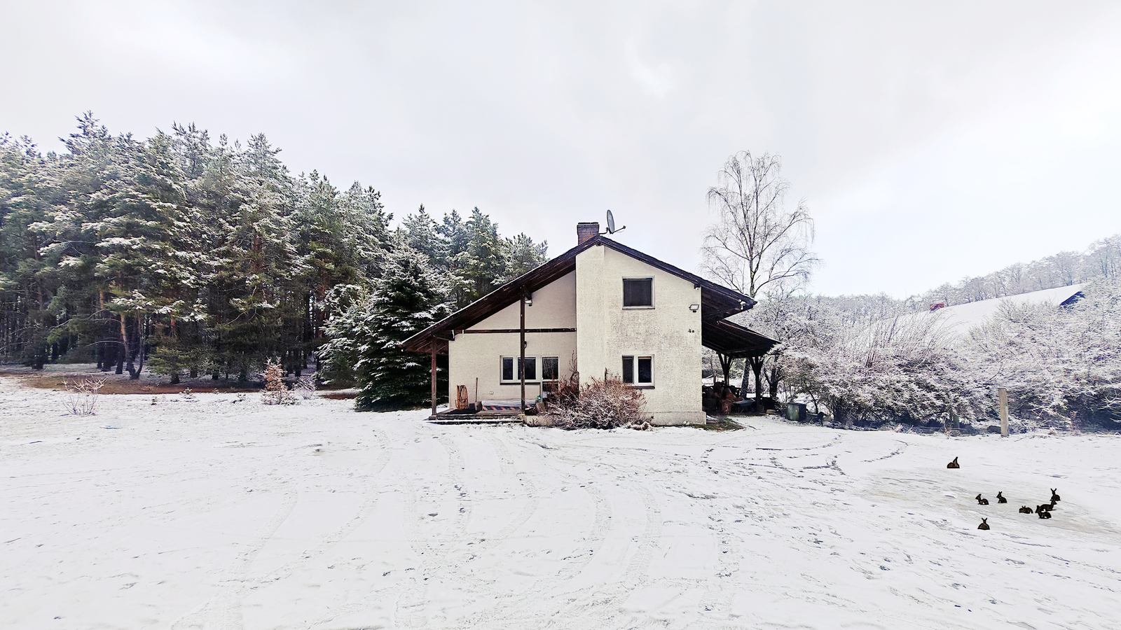 Pagórkowata, częściowo zalesiona działka o powierzchni 5500 m² zapewnia prywatność, przestrzeń i niepowtarzalny kontakt z przyrodą.