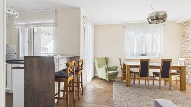 Mieszkanie znajduje się na 4 piętrze, co zapewnia ciszę, prywatność i wyjątkowy klimat wnętrza.