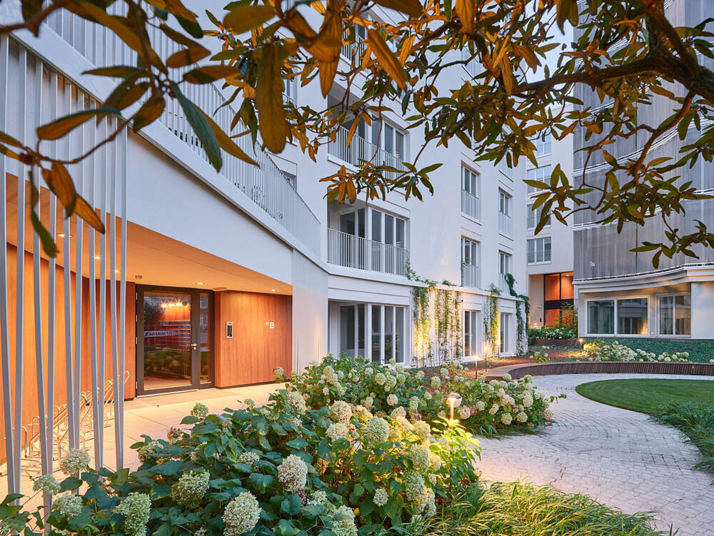 54 m² dopracowanej przestrzeni na parterze, z bezpośrednim wyjściem na prywatny taras od strony spokojnego, wewnętrznego dziedzińca – dostępnego wyłącznie dla mieszkańców.