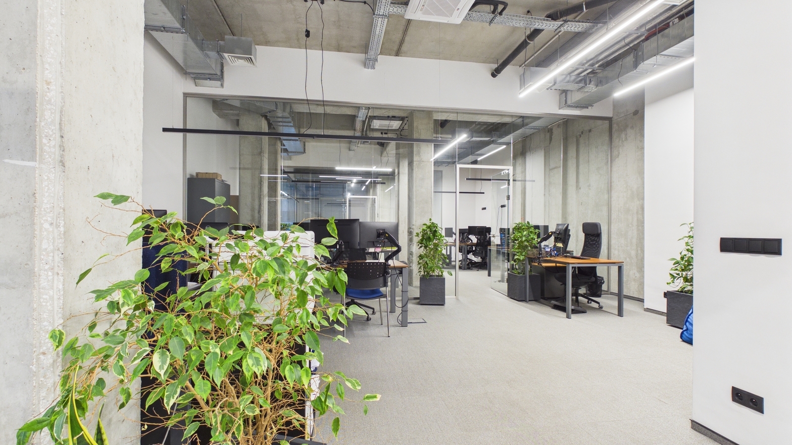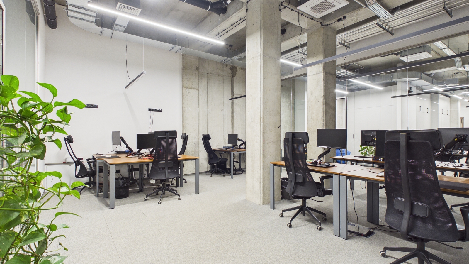 - surowe betonowe słupy i sufity,