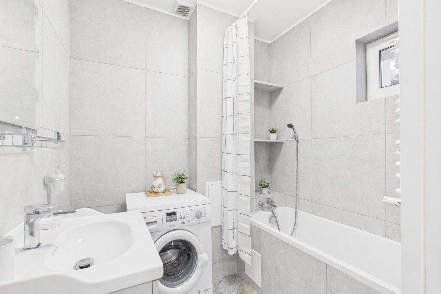 - Łazienka z wanną i pralką + osobna toaleta – wygoda na co dzień