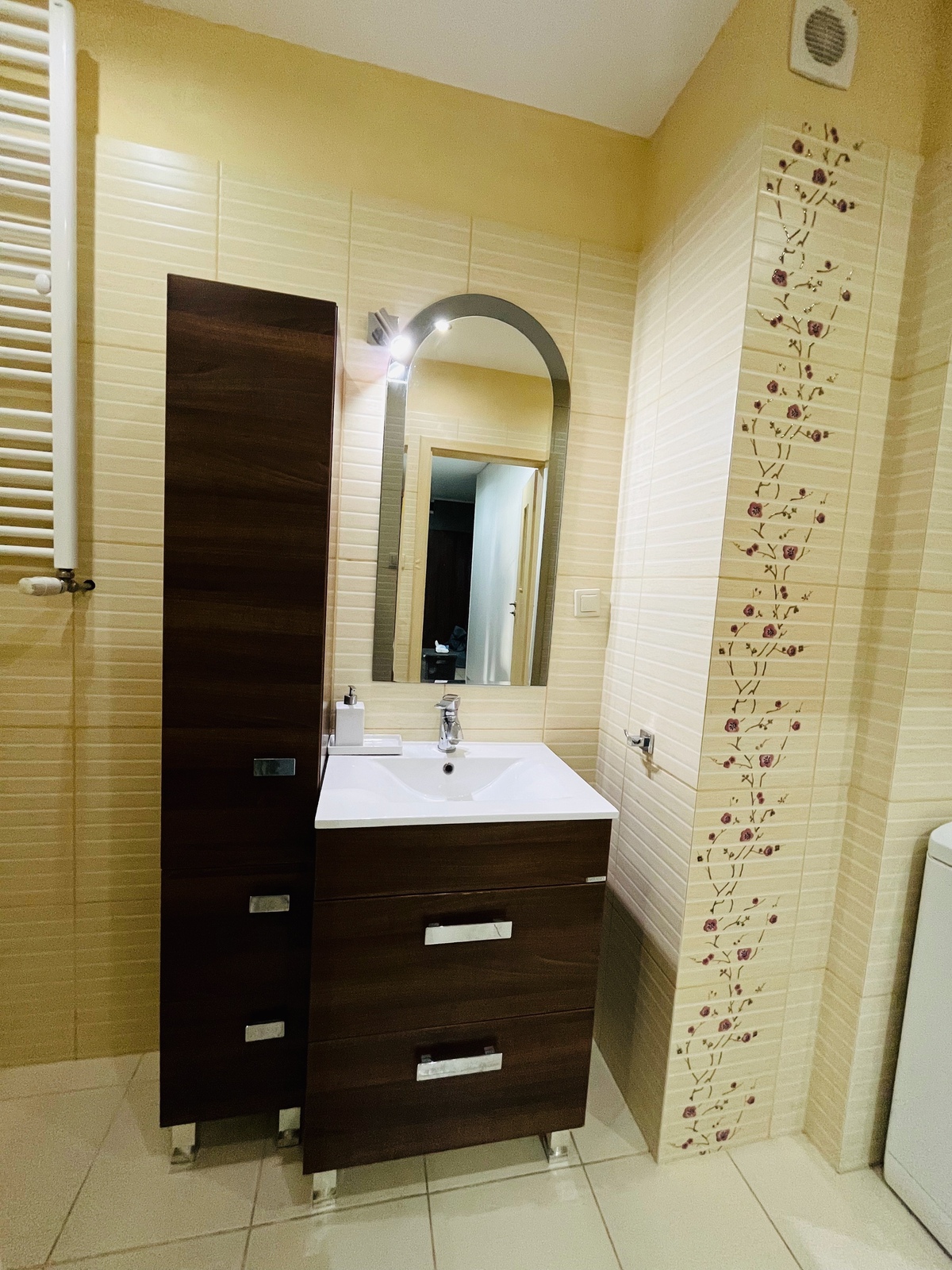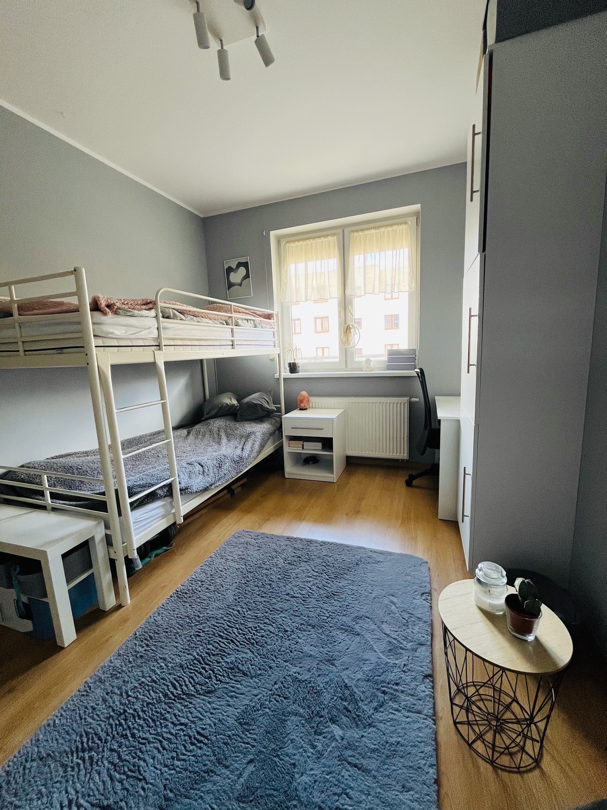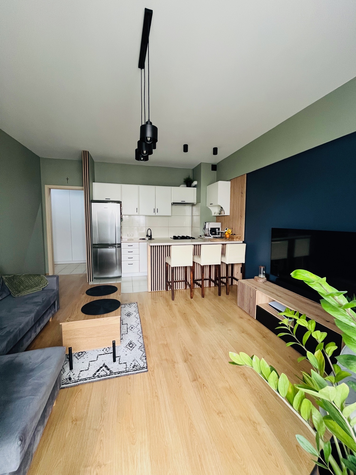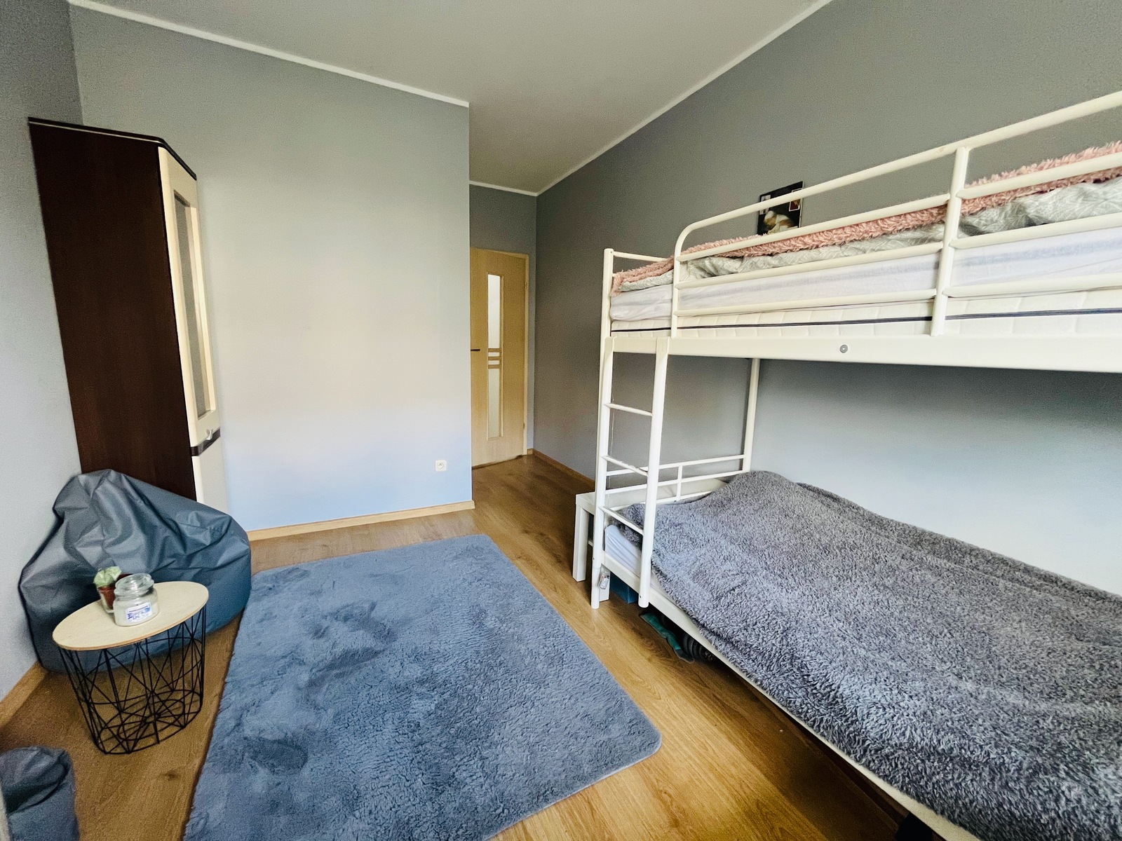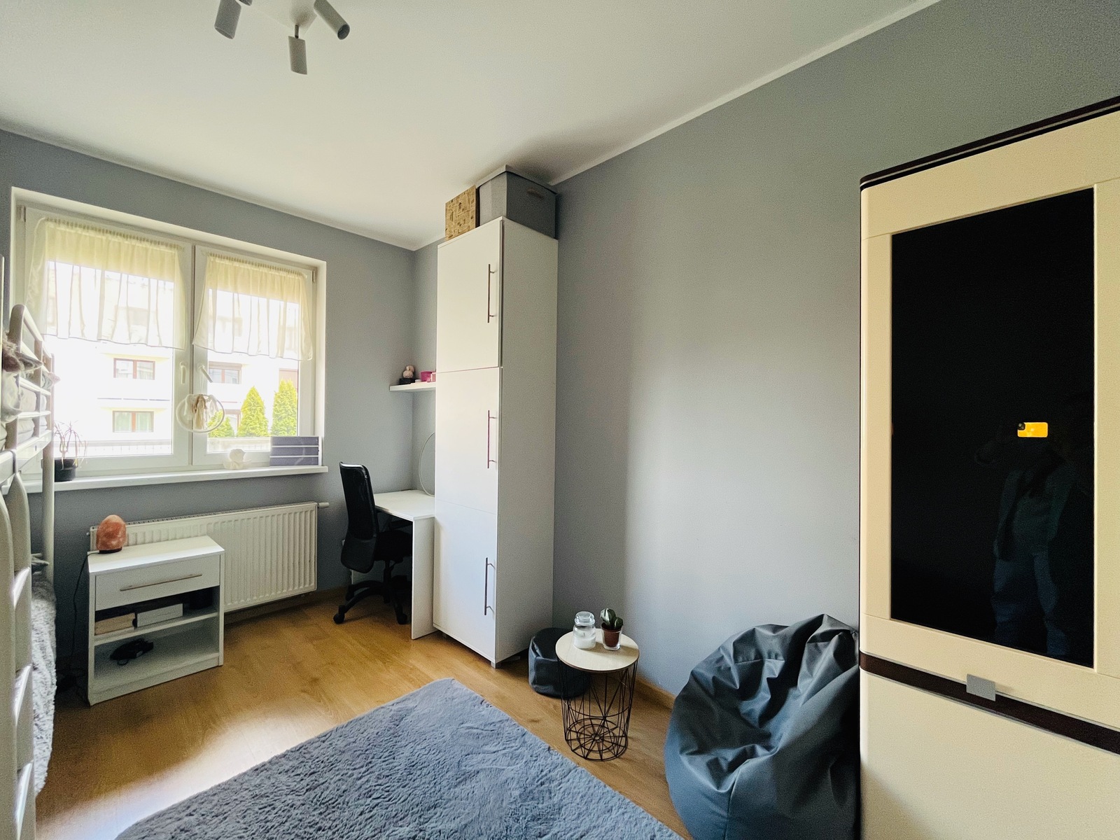 Mieszkanie składa się z przestronnego salonu z aneksem kuchennym co tworzy nowoczesną funkcjonalną przestrzeń dzienną, sypialni, łazienki oraz przedpokoju. z salonu prowadzi wyjście na duży balkon, który stanowi doskonałe miejsce do relaksu, porannej kawy czy odpoczynku po pracy. Nieruchomość jest częściowo umeblowana, co pozwala na szybkie wprowadzenie się lub swobodną aranżację według własnego gustu. Aneks kuchenny wyposażony jest w podstawową zabudowę oraz sprzęty. W oknach zamontowane zostały rolety zewnętrzne.