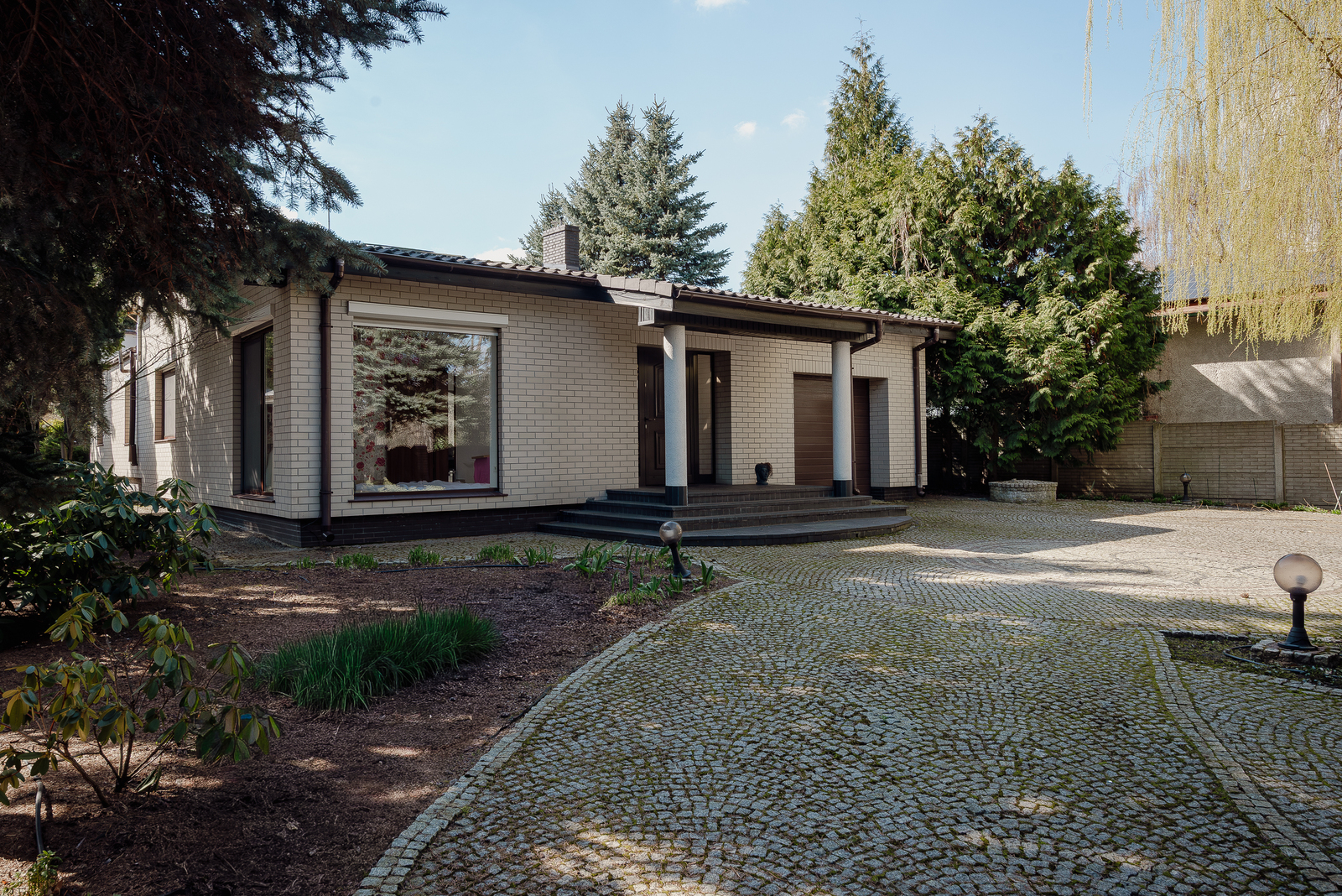 Na uwagę zasługuje również elegancki podjazd z kostki, który podkreśla reprezentacyjny charakter nieruchomości.