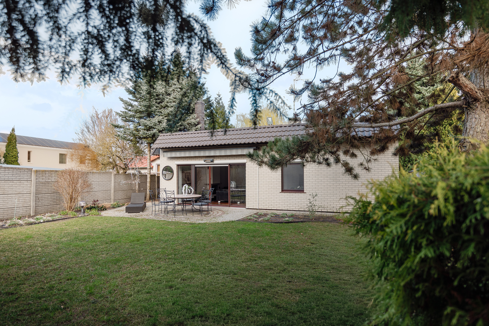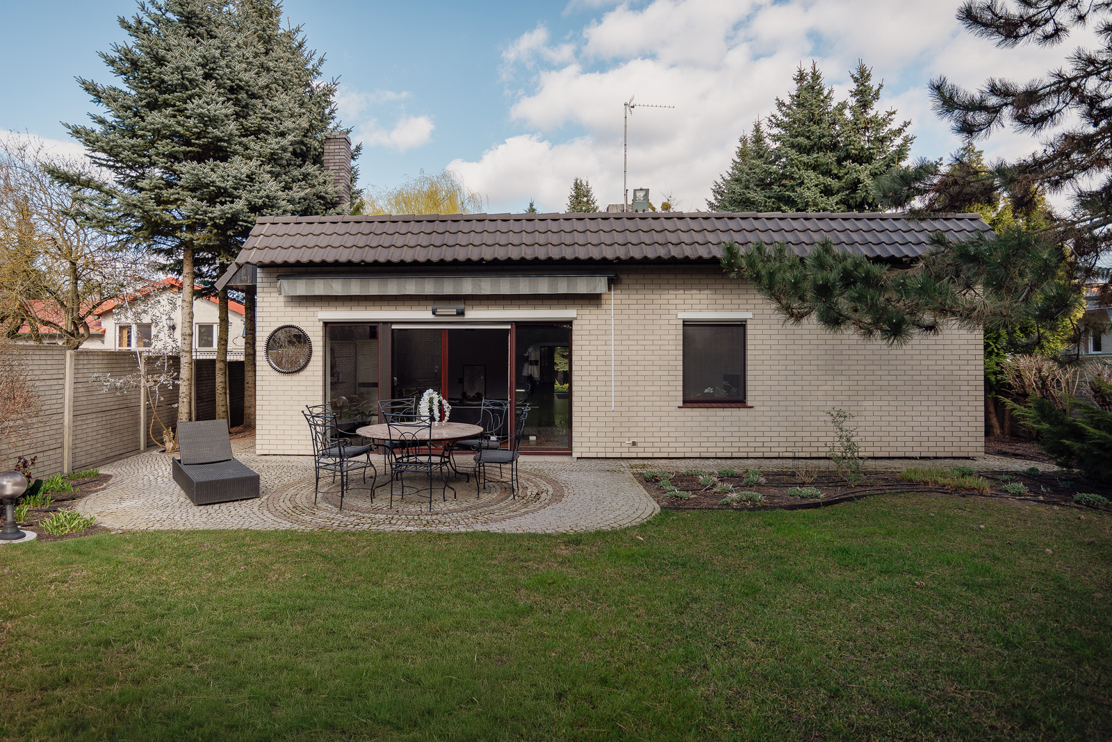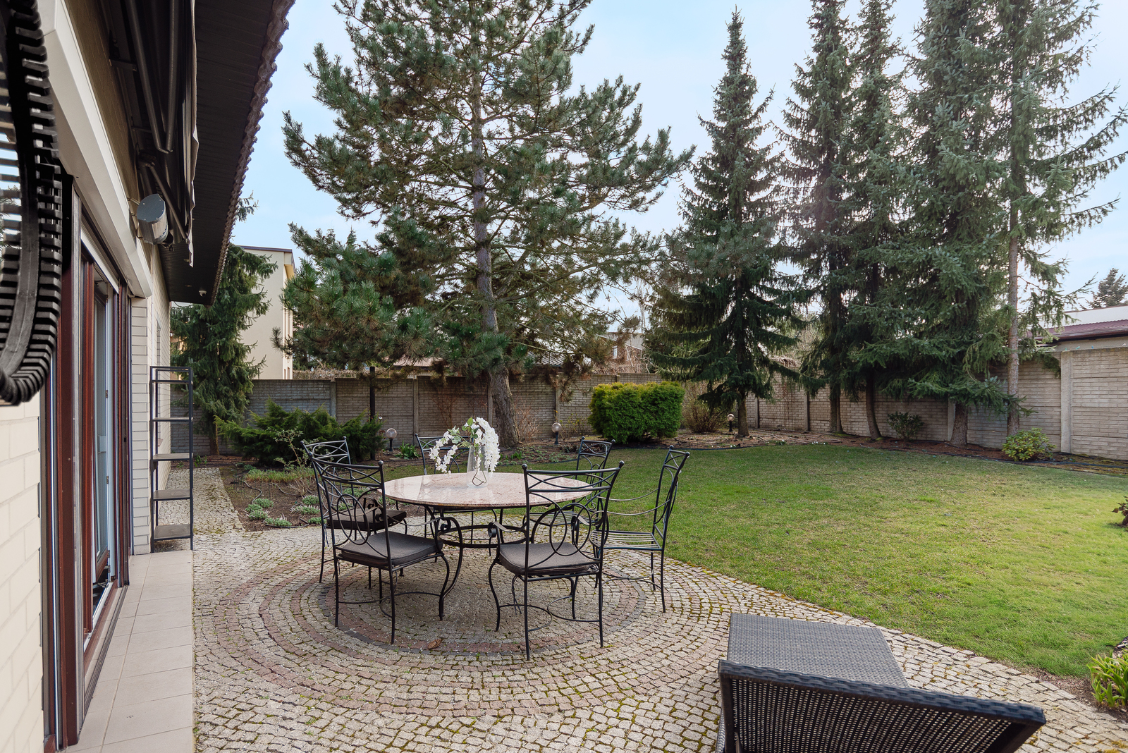 Dom położony jest na pięknie zagospodarowanej działce o powierzchni 1080 m².