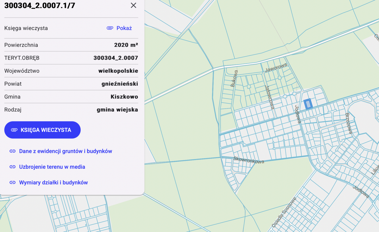 LOKALIZACJADziałka położona na skraju osiedla – nie w jego środku, co zapewnia większą prywatność i komfort życia.